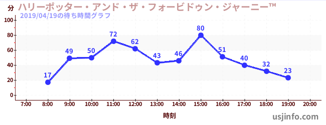 • ハリーポッター・アンド・ザ・フォービドゥン・ジャーニー™$B$N(B2019年04月19日の待ち時間