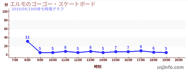 • エルモのゴーゴー・スケートボード$B$N(B2019年04月19日の待ち時間