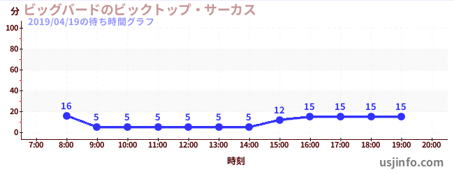 • ビッグバードのビックトップ・サーカス$B$N(B2019年04月19日の待ち時間