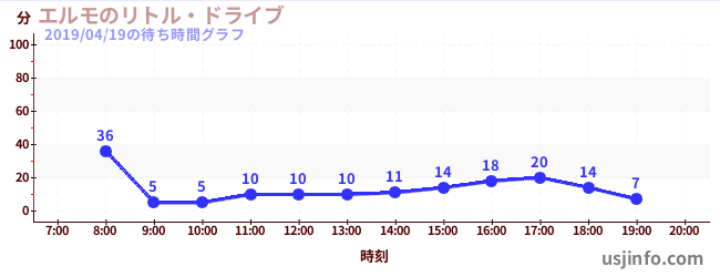 • エルモのリトル・ドライブ$B$N(B2019年04月19日の待ち時間
