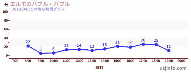 • エルモのバブル・バブル$B$N(B2019年04月19日の待ち時間
