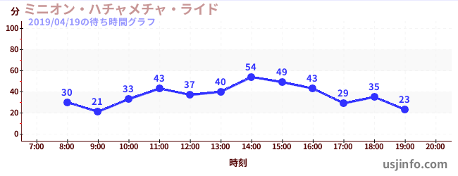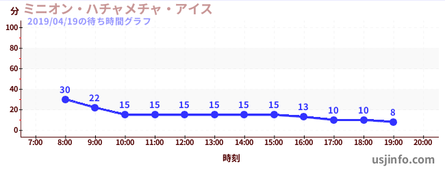 • ミニオン・ハチャメチャ・ライド$B$N(B2019年04月19日の待ち時間