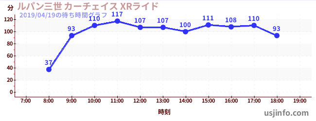 • ルパン三世 カーチェイス XRライド$B$N(B2019年04月19日の待ち時間