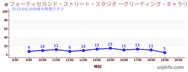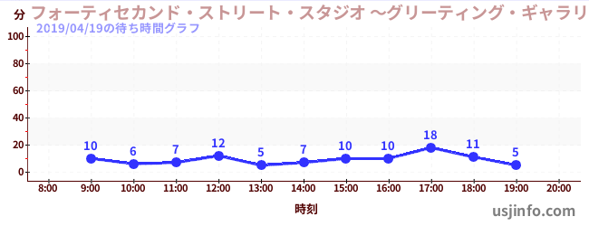 • フォーティセカンド・ストリート・スタジオ ~グリーティング・ギャラリー~ ミニオン$B$N(B2019年04月19日の待ち時間