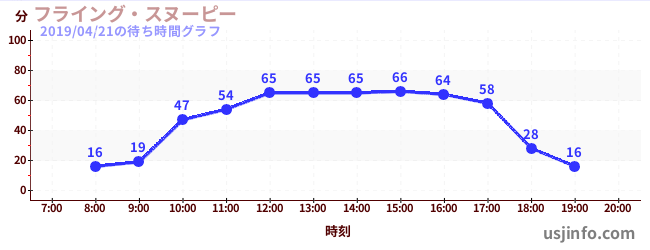 • フライング・スヌーピー$B$N(B2019年04月21日の待ち時間