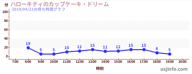 • ハローキティのカップケーキ・ドリーム$B$N(B2019年04月21日の待ち時間