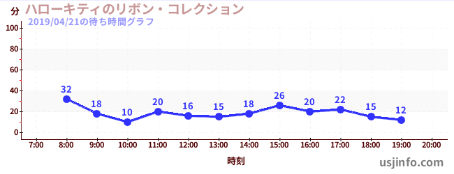 • ハローキティのリボン・コレクション$B$N(B2019年04月21日の待ち時間