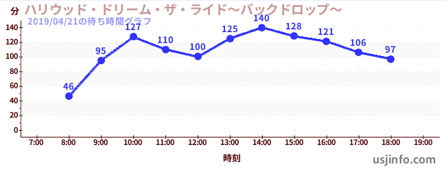 • ハリウッド・ドリーム・ザ・ライド〜バックドロップ〜$B$N(B2019年04月21日の待ち時間