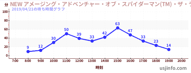 • NEW アメージング・アドベンチャー・オブ・スパイダーマン(TM)・ザ・ライド 4K3D$B$N(B2019年04月21日の待ち時間