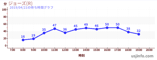 • ジョーズ(R)$B$N(B2019年04月21日の待ち時間