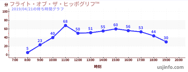 • フライト・オブ・ザ・ヒッポグリフ™$B$N(B2019年04月21日の待ち時間