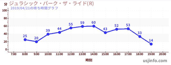 • ジュラシック・パーク・ザ・ライド(R)$B$N(B2019年04月21日の待ち時間