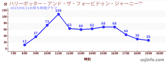 • ハリーポッター・アンド・ザ・フォービドゥン・ジャーニー™$B$N(B2019年04月21日の待ち時間