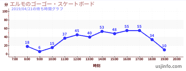 • エルモのゴーゴー・スケートボード$B$N(B2019年04月21日の待ち時間