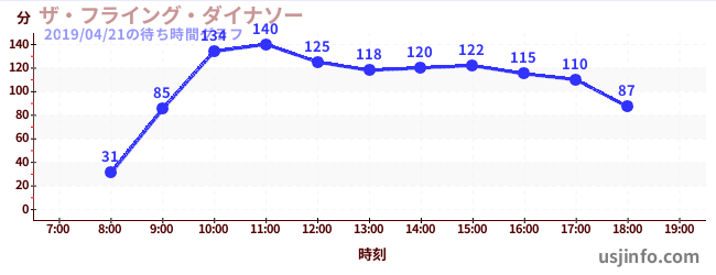 • ザ・フライング・ダイナソー$B$N(B2019年04月21日の待ち時間