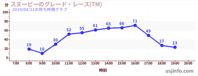 • スヌーピーのグレード・レース(TM)$B$N(B2019年04月21日の待ち時間