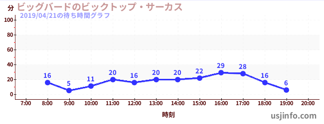 • ビッグバードのビックトップ・サーカス$B$N(B2019年04月21日の待ち時間