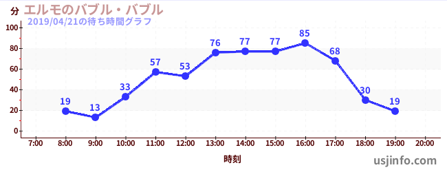 • エルモのバブル・バブル$B$N(B2019年04月21日の待ち時間