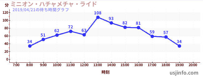 • ミニオン・ハチャメチャ・ライド$B$N(B2019年04月21日の待ち時間