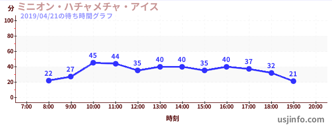 • ミニオン・ハチャメチャ・アイス$B$N(B2019年04月21日の待ち時間