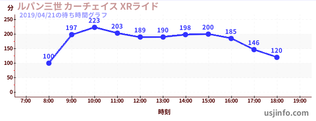 • ルパン三世 カーチェイス XRライド$B$N(B2019年04月21日の待ち時間
