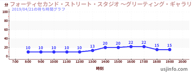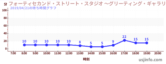 • フォーティセカンド・ストリート・スタジオ ~グリーティング・ギャラリー~ ミニオン$B$N(B2019年04月21日の待ち時間