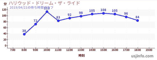 • ハリウッド・ドリーム・ザ・ライド$B$N(B2019年04月21日の待ち時間