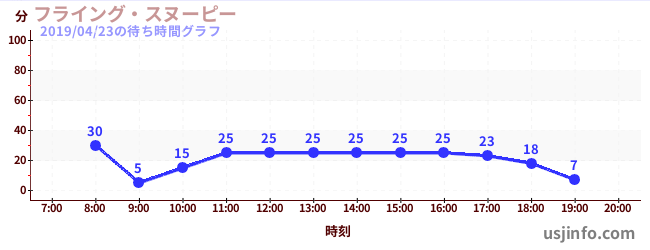 • フライング・スヌーピー$B$N(B2019年04月23日の待ち時間