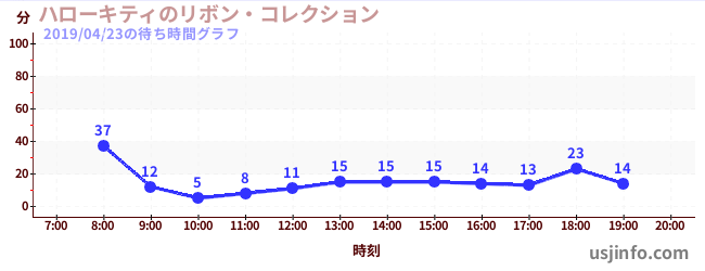 • ハローキティのリボン・コレクション$B$N(B2019年04月23日の待ち時間