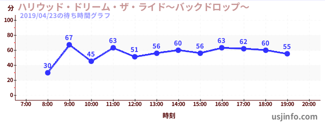 • ハリウッド・ドリーム・ザ・ライド〜バックドロップ〜$B$N(B2019年04月23日の待ち時間