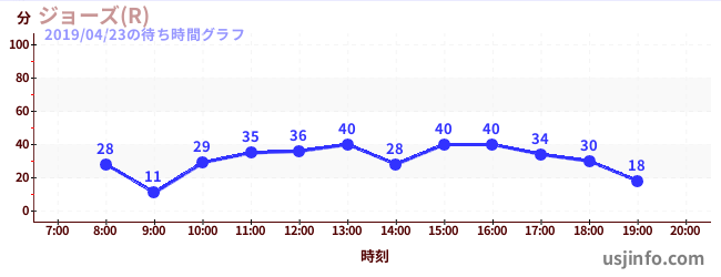 • ジョーズ(R)$B$N(B2019年04月23日の待ち時間