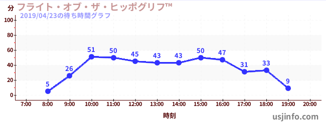 • フライト・オブ・ザ・ヒッポグリフ™$B$N(B2019年04月23日の待ち時間