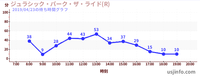 • ジュラシック・パーク・ザ・ライド(R)$B$N(B2019年04月23日の待ち時間