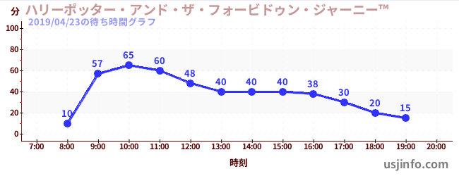 • ハリーポッター・アンド・ザ・フォービドゥン・ジャーニー™$B$N(B2019年04月23日の待ち時間