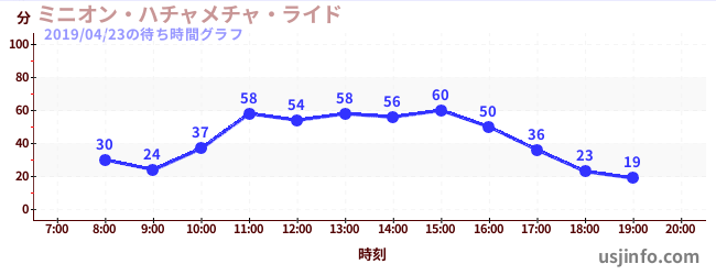 • ミニオン・ハチャメチャ・ライド$B$N(B2019年04月23日の待ち時間