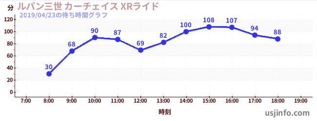 • ルパン三世 カーチェイス XRライド$B$N(B2019年04月23日の待ち時間