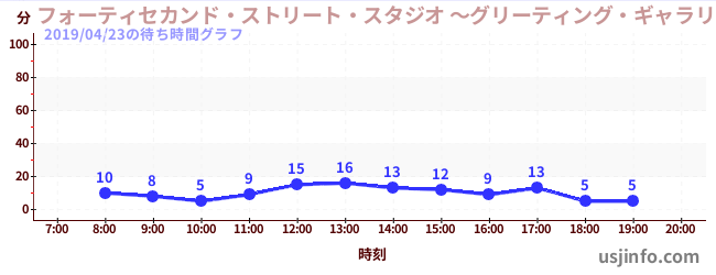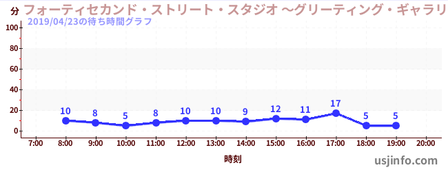 • フォーティセカンド・ストリート・スタジオ ~グリーティング・ギャラリー~ ミニオン$B$N(B2019年04月23日の待ち時間