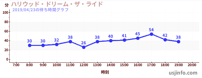 • ハリウッド・ドリーム・ザ・ライド$B$N(B2019年04月23日の待ち時間