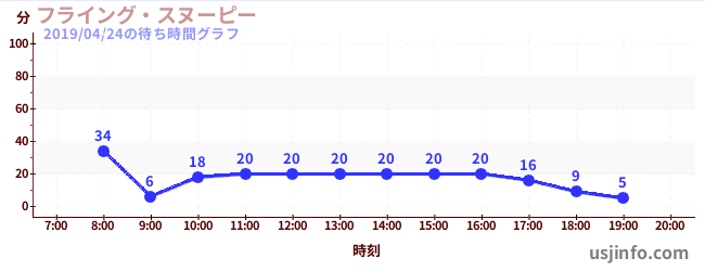 • フライング・スヌーピー$B$N(B2019年04月24日の待ち時間
