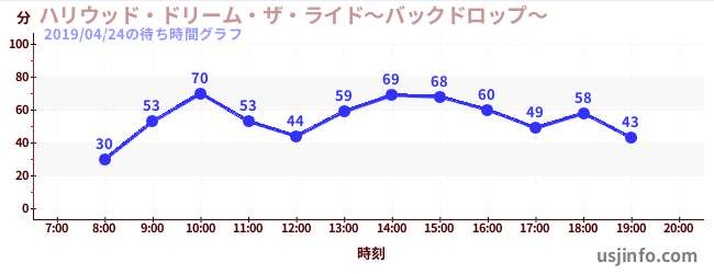 • ハリウッド・ドリーム・ザ・ライド〜バックドロップ〜$B$N(B2019年04月24日の待ち時間
