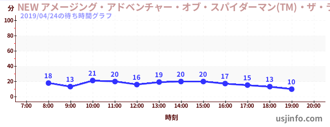 • NEW アメージング・アドベンチャー・オブ・スパイダーマン(TM)・ザ・ライド 4K3D$B$N(B2019年04月24日の待ち時間