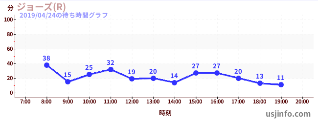 • ジョーズ(R)$B$N(B2019年04月24日の待ち時間