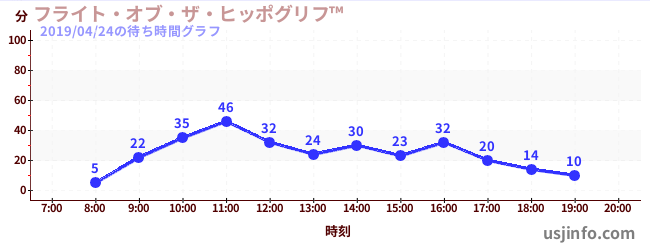 • フライト・オブ・ザ・ヒッポグリフ™$B$N(B2019年04月24日の待ち時間
