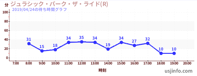 • ジュラシック・パーク・ザ・ライド(R)$B$N(B2019年04月24日の待ち時間