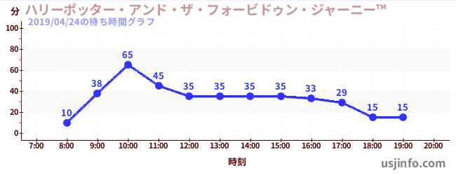 • ハリーポッター・アンド・ザ・フォービドゥン・ジャーニー™$B$N(B2019年04月24日の待ち時間