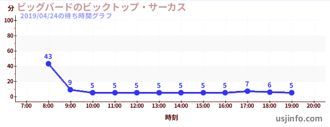 • ビッグバードのビックトップ・サーカス$B$N(B2019年04月24日の待ち時間