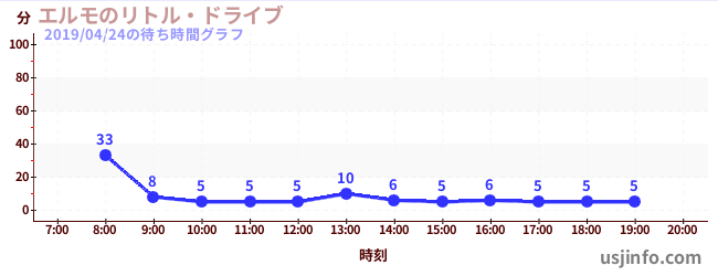 • エルモのリトル・ドライブ$B$N(B2019年04月24日の待ち時間