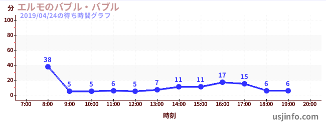 • エルモのバブル・バブル$B$N(B2019年04月24日の待ち時間