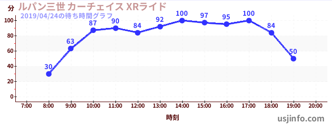 • ルパン三世 カーチェイス XRライド$B$N(B2019年04月24日の待ち時間