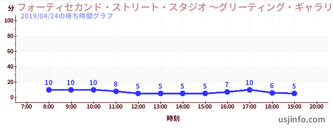 • フォーティセカンド・ストリート・スタジオ ~グリーティング・ギャラリー~ ミニオン$B$N(B2019年04月24日の待ち時間